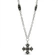 necks. She'll make a strong statement in a pendant this powerful. Artistic and pristine, this devout gothic cross displays a strong and powerful look. Glittering at the center, a single diamond accent brightens the design. For a woman with so much faith to share, this two-tone grey and black ion-plated stainless steel pendant by Black and Blue Jewelry Co. is 17.0 inches in length with a tongue and groove clasp.